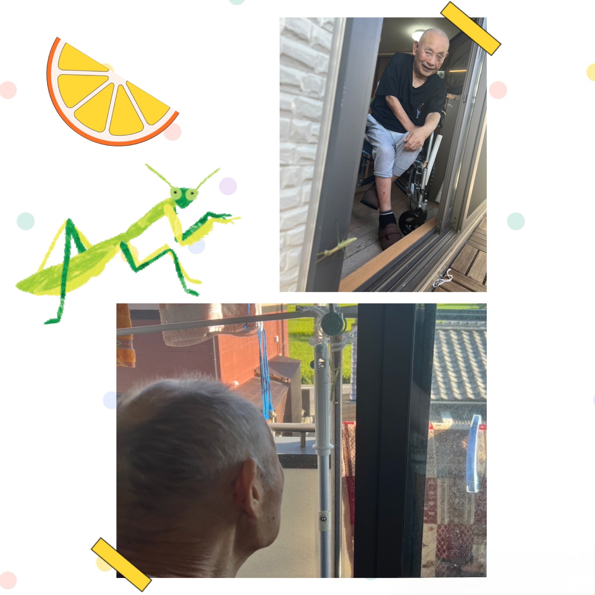 9月に入り、まだ暑い日が続きますがテラスにカマキリが遊びに来てくれました(∩´∀`)∩
