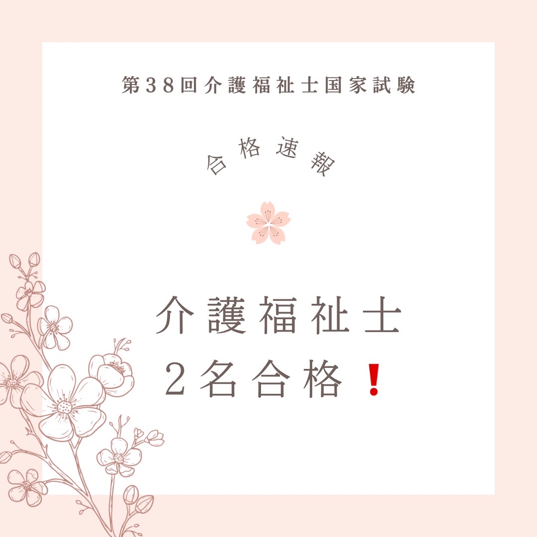今年行われた介護福祉士国家資格に受験した2名のスタッフが合格しました(^^)/
